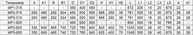 Технічна характеристика мотор-редукторів МР3-315